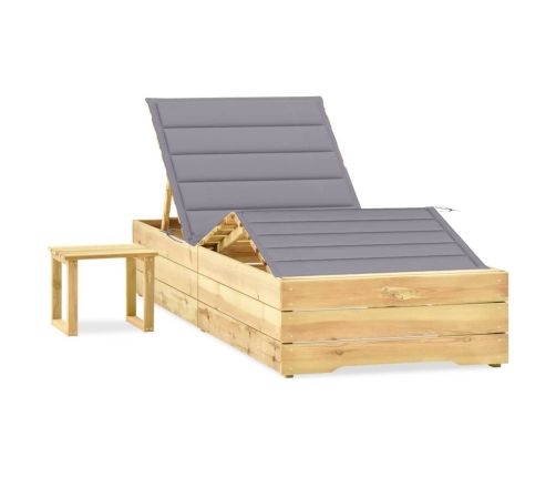 Šis koka sauļošanās krēsls ar matraci un galdiņu ir stilīgs un praktisks. Tas jūsu āra teritorijai piešķirs dabīgu šarmu.