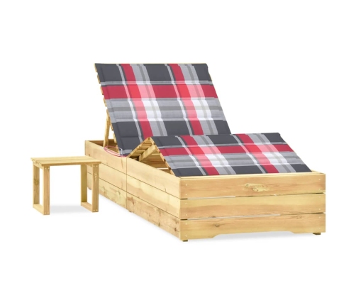 Šis koka sauļošanās krēsls ar matraci un galdiņu ir stilīgs un praktisks. Tas jūsu āra teritorijai piešķirs dabīgu šarmu.