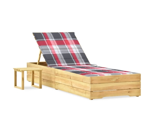 Šis koka sauļošanās krēsls ar matraci un galdiņu ir stilīgs un praktisks. Tas jūsu āra teritorijai piešķirs dabīgu šarmu.