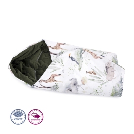 Segas viena puse ir izgatavota no augstākās kvalitātes kokvilnas, kas neizskalojas un nezaudē savas īpašības pat pēc atkārtotām mazgāšanas reizēm, otra puse no mīksta samta. Audums ir pretalerģisks, viegls un labi silda mazuli.