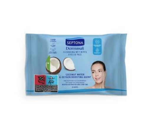 Septona Dermasoft Oczyszczające Chusteczki Nawilżane z Wodą Kokosową Do Twarzy i Oczu 20szt.