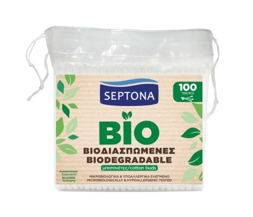 SEPTONΑ Biodegradowalne patyczki kosmetyczne dzięki 100% bawełnianym wacikom zapewniają delikatne oczyszczanie i naturalną pielęgnację dla całej rodziny. Papierowa sztyft bazowy sprawia, że produkt ten ulega biodegradacji po użyciu. Używając biodegradowalnych płatków kosmetycznych SEPTONA, zmniejszasz swój osobisty wpływ na środowisko. W nowym, praktycznym opakowaniu papierowym nadającym się do recyklingu