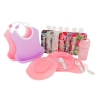 Praktisks komplekts, kas padarīs ēšanu patīkamāku un mudinās mazos ēst pašiem! Tas sastāv no vaļa formas silikona šķivja un galda piederumu komplekta (dakšiņas un karotes), kas izgatavots no nerūsējošā tērauda un silikona. Katram no šķīvja nodalījumiem ir atšķirīga ietilpība, kas ļauj pareizi novietot atsevišķus ēdiena elementus. Šķīvja pamatnē ir silikona piesūceknis, kas neļauj šķīvim kustēties, atvieglojot mazuļa ēšanu. Galda piederumi ir aprīkoti ar silikona rokturiem, kas novērš nekontrolētu karotes vai dakšiņas izslīdēšanu no rokas.