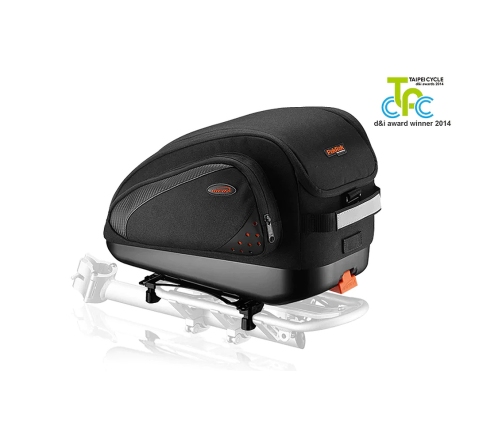 Ar ātrās piespraušanas sistēmu, ar nesēja interfeisa adapteri - nesējiem ar nesēja gultnes platumu 100–150 mm un sliedes diametru 9–12,7 mm, somas izmēri: 37 x 22 x 25 cm, 15 l ietilpība, pārnēsāšana ierobežojums 10 kg, materiāls: polipropilēns, ūdens izturīgs neilons