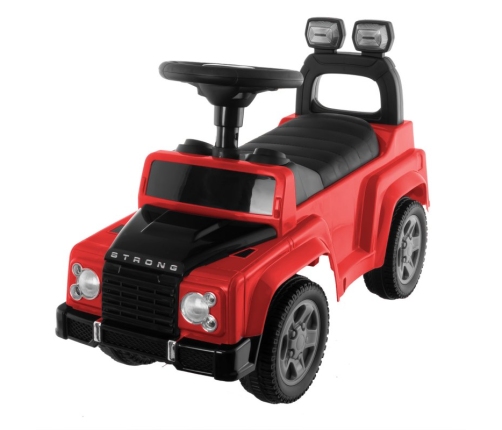 Mašīna ir aprīkota ar stūri un grozāmiem priekšējiem riteņiem. Zem sēdekļa ir nodalījums rotaļlietām. Izgatavota no augstas kvalitātes plastmasas.