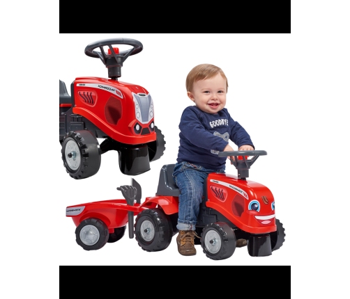 Traktors Baby Mac Cormick ar piekabi no Falk ir sapņu piepildījums ne vienam vien mazajam traktoru vadītājam. Tas ir rūpīgi izstrādāts, ar uzmanību pret katru sīkumu! Neviens īsts lauksaimnieks no tā neatteiktos. Transportlīdzeklis izgatavots no augstākās kvalitātes plastmasas un ir paredzēts bērniem no 12 mēnešiem. Transportlīdzeklis ir aprīkots ar noņemamu piekabi ar paneļiem un stūri ar klaksonu. Traktora riteņi ir izgatavoti no augstas kvalitātes plastmasas. Papildus traktora komplektā ietilpst bērnu grābekļi un lāpstiņa, kas ļaus jūsu mazulim izklaidēties. Klāt piegādātās uzlīmes ļaus bērnam izvēlēties savu unikālo stilu. Smaidīga seja vai standarta uzlīme? Pārsteidziet visus un uzlīmējiet to uz transportlīdzekļa priekšpuses.