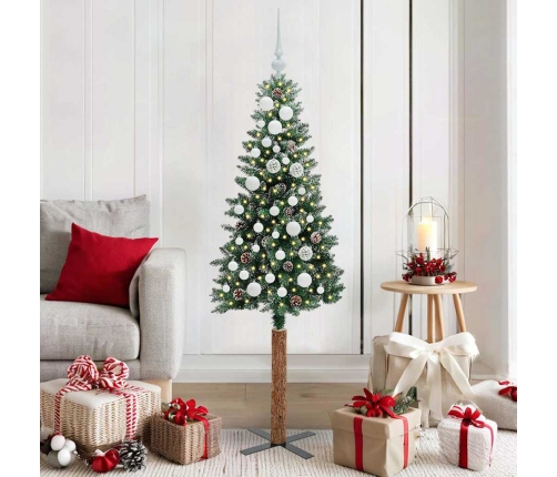 • Dekoratīvs ar priežu čiekuriem un ornamentālajām bumbiņām, dzīvotspējīgi zari ar saldētu sniegu, īsta koka stumbrs