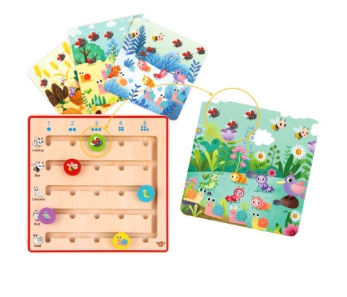 Drewniana gra od Tooky Toy wspomaga naukę liczenia poprzez zabawę. Leśny motyw przeniesie brzdąca w świat małych, leśnych przyjaciół: biedroneczki, ptaszka, ślimaczka, gąsieniczki i pszczółki, które będą towarzyszyć przez cały czas zabawy. Producent wybierając najwyższej jakości, ekologiczne materiały zadbał o bezpieczeństwo dzieci i środowiska.