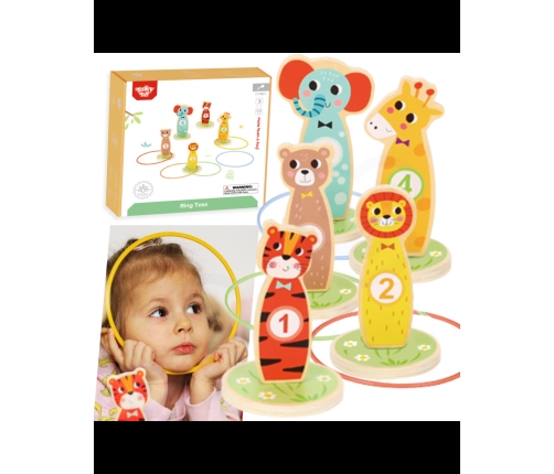 Tooky Toy Drewniana Gra Zręcznościowa Rzut do Celu - Ta zabawna gra zręcznościowa jest idealną rozrywką dla dzieci. W miarę postępów w grze jest możliwość zwiększenia poziomu trudności, umieszczając kołki dalej. Zestaw składa się z 5 uroczych kołków na kółkach w kształcie zwierzątek i 5 kółeczek do rzucania. Nadaje się do zabawy w domu i na zewnątrz. Możliwość gry samemu, jak również w towarzystwie.