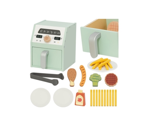 Wejdź do świata kulinarnych przygód razem z naszą drewnianą frytkownicą beztłuszczową marki Tooky Toy. Ten air fryer to zabawka, która łączy realizm zabawy z bezpieczeństwem drewna. Wyposażona w detale przypominające prawdziwy sprzęt - cyfrowy wyświetlacz i regulowane pokrętło sterujące, co pozwala dziecku odczuć prawdziwą pracę kucharza. To nie tylko kuchnia; to sensoryczna przestrzeń do odkrywania, eksperymentowania i rozwijania zainteresowania gotowaniem. Idealna dla małych entuzjastów jedzenia i przyszłych kucharzy!