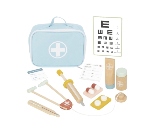 Ból gardła, brzucha? Gorączka? A może słaby wzrok? Z Zestawem Małego Lekarza twój maluch z pewnością zdiagnozuje każdą przypadłość. Najpierw osłucha stetoskopem, zbada wzrok oraz zmierzy temperaturę, a następnie zrobi zastrzyk, przepisze maść lub lekarstwo. Z takim wyposażeniem mały lekarz z pewnością stanie się najlepszym specjalistą. Zabawki wykonane z wysokiej jakości drewna, pomalowanego nietoksycznymi farbami, które są bezpieczne dla dzieci.