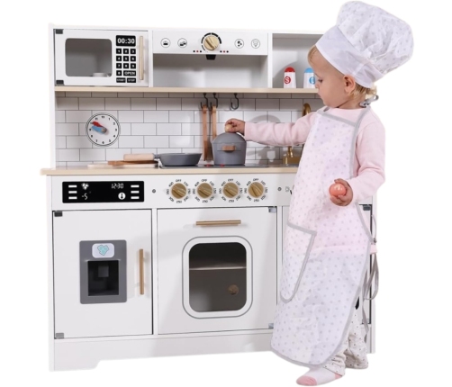 Drewniana nowoczesna kuchnia od Tooky Toy to ponadczasowa i ulubiona zabawka dla dzieci powyżej 3 roku życia, która przeniesie je w świat gotowania. Kuchnia kompletnie wyposażona w akcesoria i urządzenia, stymulujące prawdziwą kuchnię, co sprawia, że idealnie nadaje się do zabawy w odgrywanie ról, pozwalając dzieciom na naśladowanie codziennego życia dorosłych. Zabawa drewnianą kuchnią od Tooky Toy nie tylko dostarcza radości i rozrywki, ale także rozwija wyobraźnię, koordynację ruchową i umiejętności społeczne dziecka. To kompleksowe doświadczenie, które połączone jest z edukacją i kreatywnością, stymulując rozwój maluchów na wielu płaszczyznach. Drewniana konstrukcja kuchni gwarantuje trwałość i estetykę, a dodatkowo zapewnia realistyczne wrażenia podczas zabawy.