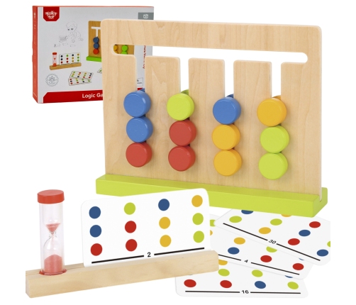 Gra logiczna od Tooky Toy zapewni Twojemu dziecku wiele godzin interaktywnej zabawy, podczas której nauczy się podstawowych kolorów i następujących wzorów. Ta zabawka jest dostarczana w komplecie z drewnianą ramą, klepsydrą i 15 dwustronnymi kartami z 30 wzorami. Zadaniem dziecka jest odwzorowanie wzoru z karty w określonym czasie.