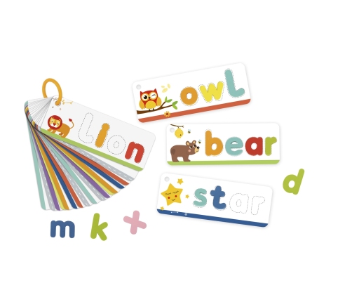 Karty z ilustracjami zwierzątek z klockami do dopasowania w kształcie liter od marki Tooky Toy to świetny sposób, aby pomóc dzieciom w rozpoznawaniu liter alfabetu i rozwijaniu wczesnego słownictwa. Każda karta ma rysunek zwierzęcia i kontury imienia zwierzęcia, w którym dzieci muszą ułożyć odpowiednie litery do umieszczenia w konturze. Sprzedawane z przyjazną dla dzieci obręczą, aby złożyć wszystkie karty razem po zakończeniu.