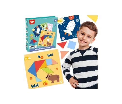 Tooky Toy Układanka Kształtów zapewni mnóstwo dobrej zabawy wspomagając przy tym rozwój intelektualny najmłodszych. Intensywne kolory i radosne wizerunki zwierzątek sprawią, że zabawka przypadnie do gustu nawet najbardziej wymagającemu użytkownikowi. Dzięki tej zabawce twoja pociecha ma możliwość za pomocą magnetycznych figur geometrycznych dopasować odpowiednio obrazki na specjalnej platformie i układać z nich zwierzątka Kompaktowe opakowanie sprawi, że będą idealne w podróży. Producent wybierając najwyższej jakości, ekologiczne materiały zadbał o bezpieczeństwo dzieci i środowiska.