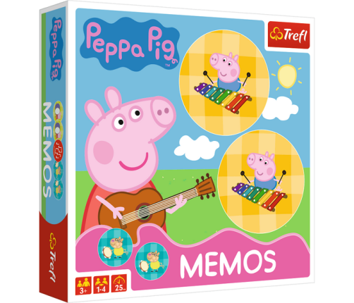 Memos to popularna gra ćwicząca pamięć i spostrzegawczość, która podbiła serca graczy na całym świecie. Tym razem do gry zaprasza Świnka Peppa i jej przyjaciele. Na kartonikach znajdziesz postacie uwielbianej przez dzieci bajki pt. Świnka Peppa. Odkrywaj. łącz w pary takie same ilustracje i baw się razem z Peppą!
