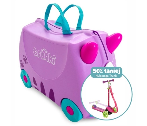 Little cat lovers can ride, carry, or be towed along to save tired feet. As with all Trunki ride on suitcases Cassie the Cat Trunki has an 18-litre capacity, a comfy saddle, secure lockable catches, a soft rubber trim, and an internal pocket and teddy bear seat belt.