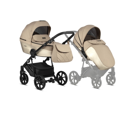 Viva 4 Luxury kolekcija ir ārkārtīgi harmoniska glancētās eko-ādas un tekstila audumu kombinācija. Tie ir izturīgi materiāli, kas vizuāli piešķir ratiņiem spīdumu (eko-āda) un tekstūru (tekstils).