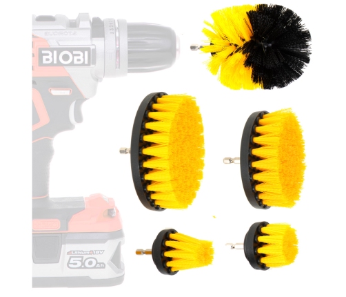 Komplektā ir 5 dažāda izmēra un formas birstes, kas ļauj izvēlēties piemērotu birsti tīrītajai virsmai. Komplekta daudzpusība padara to par lielisku papildinājumu jebkurai mājai, garāžai vai darbnīcai.