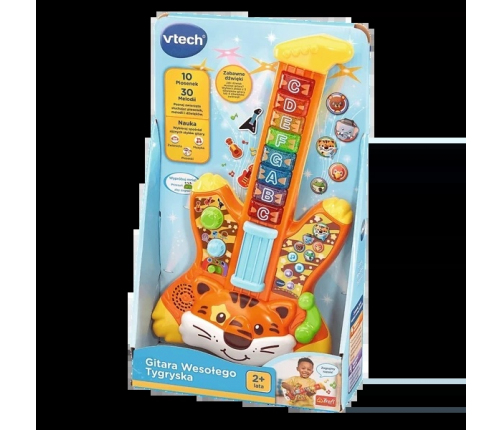 Gitara Wesołego Tygryska to interaktywna zabawka edukacyjna, która wprowadzi Cię w świat muzyki i nauki. Wybierz jeden z dwóch trybów zabawy: graj na gitarze jak profesjonalista lub dołącz do zespołu zwierzaków, aby dać wspólny gitarowy koncert.