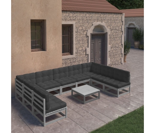 vidaXL 10-daļīgs dārza atpūtas mēbeļu komplekts ar matračiem, priede
