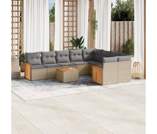 vidaXL 10-daļīgs dārza dīvāna komplekts, matrači, bēša PE rotangpalma