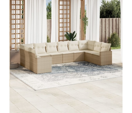 vidaXL 10-daļīgs dārza dīvāna komplekts, matrači, bēša PE rotangpalma