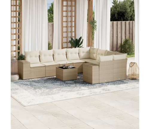 vidaXL 10-daļīgs dārza dīvāna komplekts, matrači, bēša PE rotangpalma