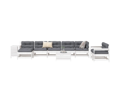 vidaXL 10-daļīgs dārza dīvānu komplekts, balts priedes masīvkoks