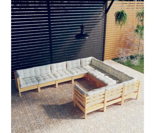 vidaXL 10-daļīgs dārza mēbeļu komplekts ar krēmkrāsas matračiem, koks