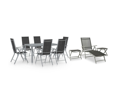 Pulverkrāsotais alumīnija rāmis padara mēbeļu komplektu ļoti izturīgu. Dārza krēsliem ir mīksta tekstilēna sēdekļi un 7 pozīcijās regulējamas atzveltnes, lai jūs vienmēr varētu tos noregulēt sev ērtākajā pozīcijā. Kāju balsti piešķir papildu komfortu. Tos var izmantot arī kā kafijas galdiņus dzērienu un ēdienu parocīgai novietošanai. Ēdamgaldam ir stikla virsma, kuru ir viegli tīrīt ar mitru drānu.