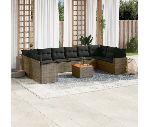 vidaXL 11-daļīgs dārza dīvāna komplekts ar matračiem, pelēks PE pinums