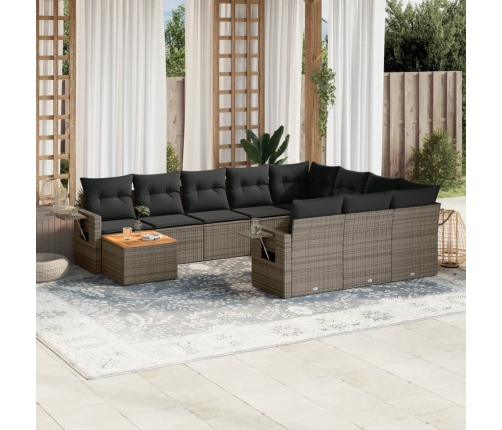 vidaXL 11-daļīgs dārza dīvāna komplekts ar matračiem, pelēks PE pinums