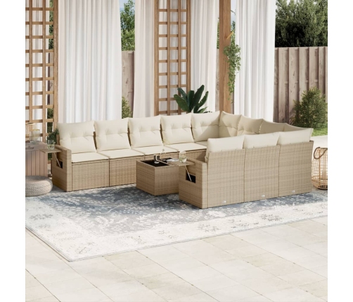 vidaXL 11-daļīgs dārza dīvāna komplekts, matrači, bēša PE rotangpalma
