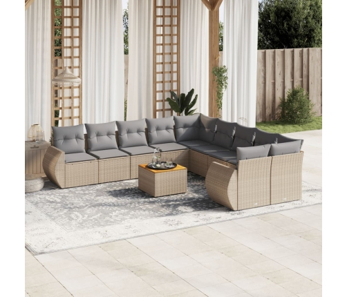 vidaXL 11-daļīgs dārza dīvāna komplekts, matrači, bēša PE rotangpalma