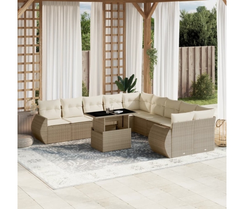 vidaXL 11-daļīgs dārza dīvāna komplekts, matrači, bēša PE rotangpalma
