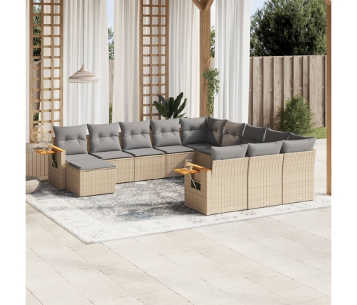 vidaXL 11-daļīgs dārza dīvāna komplekts, matrači, bēša PE rotangpalma