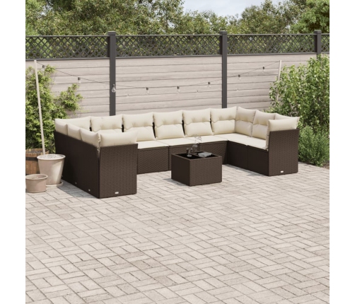 vidaXL 11-daļīgs dārza dīvāna komplekts, matrači, brūna PE rotangpalma