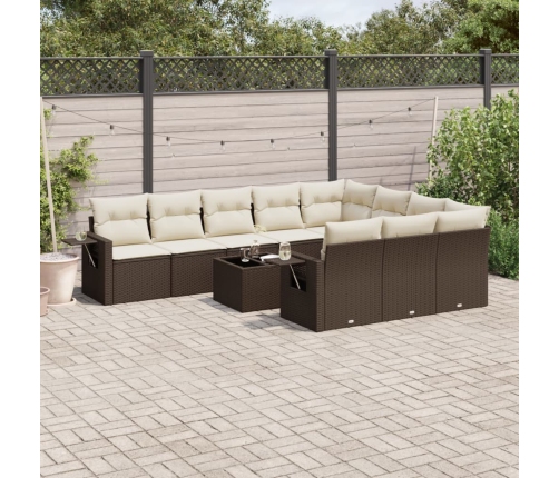 vidaXL 11-daļīgs dārza dīvāna komplekts, matrači, brūna PE rotangpalma