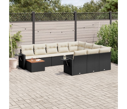 vidaXL 11-daļīgs dārza dīvāna komplekts, matrači, melna PE rotangpalma