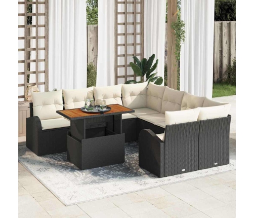 Šis dārza dīvānu komplekts ir izstrādāts, lai atbilstu jūsu telpai un stilam ar tā modulāro dizainu. Tas ir ideāli piemērots visiem pagalmiem, balkoniem un dārziem. Ar tīro melno poli rotangpalmu un siltajiem koka akcentiem, šis 9 gabalu komplekts piešķir modernu eleganci jūsu āra teritorijai un nodrošina ērtu vietu ģimenes un draugu sanākšanām.