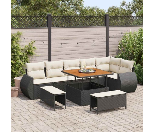 - Stilīga apdare: Modernā melnā sintētiskā rotangpalma un krēmkrāsas spilveni rada stilīgu izskatu, kas sader ar jebkuru āra dekoru.