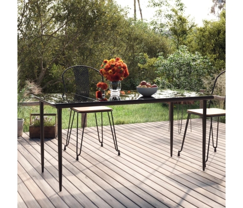 - Apaļas cauruļveida kājas: šim dārza galdam ir pulverkrāsota tērauda kājas, kas to padara ļoti stabilu un izturīgu.