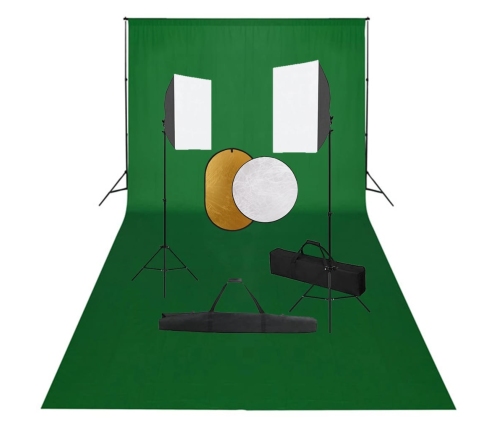 Teleskopiskā fona sistēma ir regulējama platumā un augstumā, tādēļ to var pielāgot dažādām vajadzībām. Kombinācijā ar fonu tā ir lieliski piemērota gan fotografēšanai, gan filmēšanai. Profesionālās fotostudijas gaismas padarīs gaismu vienmērīgāku un noņems ēnas, palīdzot nodrošināt ideālu vidi fotosesijai. Sūtījumā kopā ar fotostudijas gaismām ir iekļauts stabils un izturīgs tērauda trijkāja statīvs, kura garumu var noregulēt no 90 līdz 208 cm atbilstoši jūsu vajadzībām. Trijkāja statīvam ir standarta 1/4" vītne visām analogajām un digitālajām kamerām. Reflektoru komplektā ietilpst apaļš "5-vienā" reflektors un elipses formas "2-vienā" reflektors. Katram reflektoram ir dažādi virsmas paneļi. Jūs varat strādāt ar dažādām kombinācijām siltākām vai vēsākām gaismām. Fotostudijas komplektu var viegli uzglabāt un pārvietot ar sūtījumā iekļauto pārnēsāšanas somu.