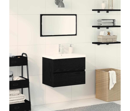 Šis izlietnes skapītis apvieno modernu dizainu un funkcionalitāti, tādējādi kļūstot par stilīgu papildinājumu tavas vannas istabas iekārtojumam. Izgatavots no inženierijas koka melnā ozola tonī ar foršu baltu virsmu, tam ir glīta iebūvēta izlietne un daudz vietas uzglabāšanai.