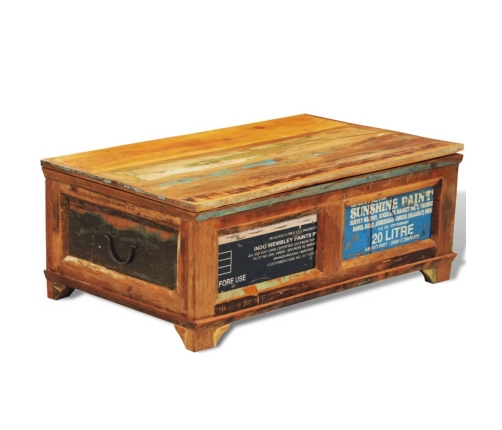 Šis antīkā stila pārstrādātā koka kafijas galdiņš ar ietilpīgu glabāšanas nodalījumu zem vāka būs mūsdienīgs un vienmēr aktuāls jūsu mājas iekārtojuma elements. Nav svarīgi, vai jūs meklējat kafijas galdiņu uz kura novietot ēdienu vai dzērienus vai uzglabāšanas lādi, šis divi vienā galdiņš noderēs visās situācijās.