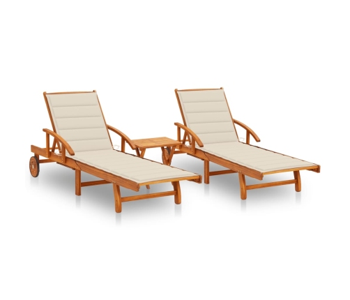 Sauļošanās krēsls ir izgatavots no akācijas masīvkoka, kas ir noturīgs pret laikapstākļu ietekmi, stiprs un piemērots izmantošanai ārpus telpām. Pateicoties riteņiem, to var viegli pārvietot. Krēsls ir ļoti ērts, jo tā atzveltne un kāju balsts ir regulējami - sākot no pilnīgi taisnas līdz guļus pozīcijai. Krēslu un galdu var salocīt, kad tos nelieto. Komplektā ir iekļauts arī praktisks un dekoratīvs matracis.
