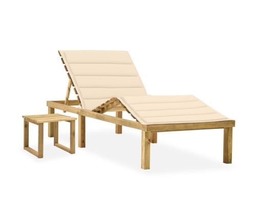 Šis koka sauļošanās krēsls ar matraci un galdiņu ir stilīgs un praktisks. Tas jūsu āra teritorijai piešķirs dabīgu šarmu.