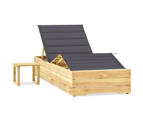 Šis koka sauļošanās krēsls ar matraci un galdiņu ir stilīgs un praktisks. Tas jūsu āra teritorijai piešķirs dabīgu šarmu.