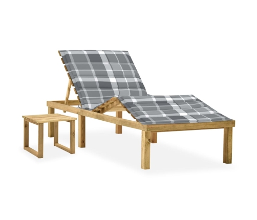 Šis koka sauļošanās krēsls ar matraci un galdiņu ir stilīgs un praktisks. Tas jūsu āra teritorijai piešķirs dabīgu šarmu.